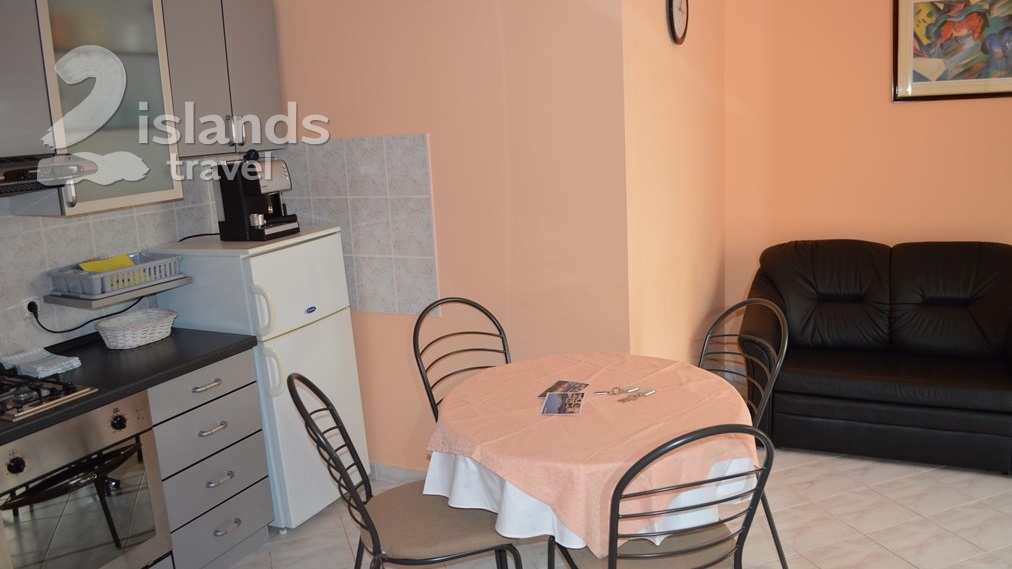 Apartment Kate 3 comprise a flat-screen TV with satellite channels, fridge, Coffe-maker, hair dryer and radio. This unit can accommodate max 5 people, consists of two separate bedrooms with double beds, private bathroom with shower, fully equipped kitchen and living room with sofa.
