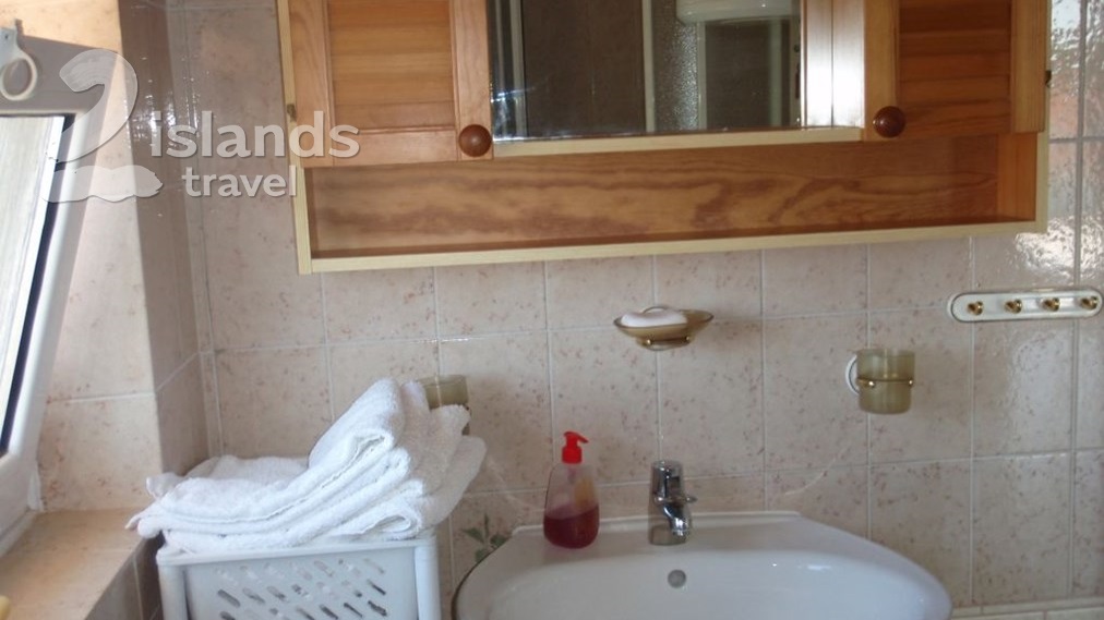 Local buses stop 100 meters away and features lines to the every village on the island.