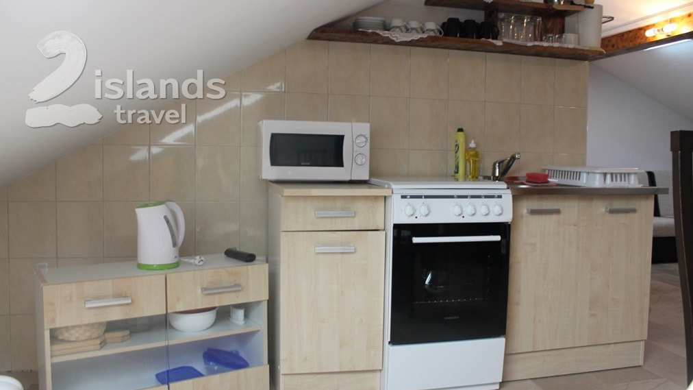 Studio-apartment Perla 2 is located on the second floor and can accommodate up to 6 people. This comfortable unit is equipped with air-condition, Sat-TV, free Internet access, microwave, toster and washing machine.