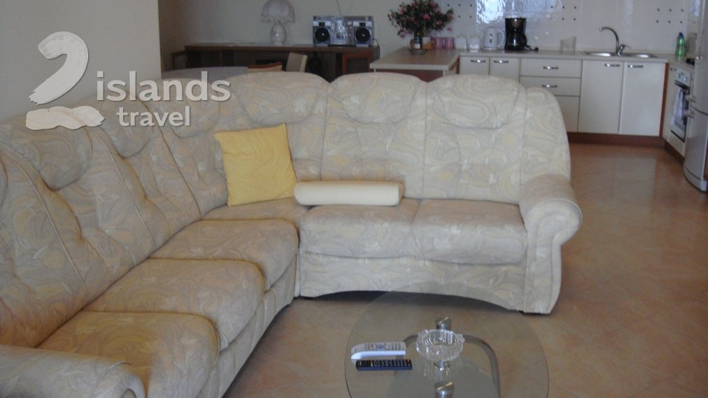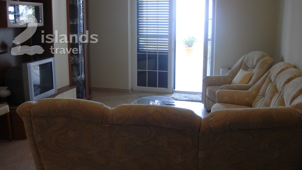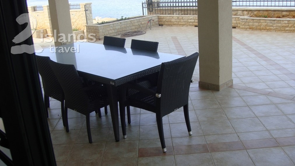 This seafront apartment offers accommodation for max 4 people. It has two bedrooms, kitchen,, living room, bathroom and a terrace. Outside it has a garden with barbecue and a parking space.