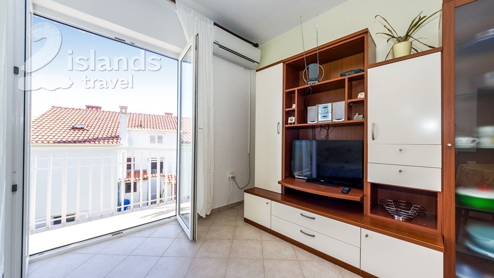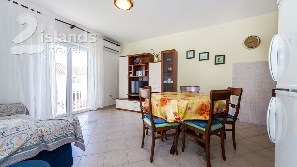 This two bedroom apartment is located in Preko on the island Ugljan and can accommodate up to five people. It has a spatious living room and kitchen with refridgerator, washing machine and freezer. The apartment also has an air conditioner, tv and internet connection.