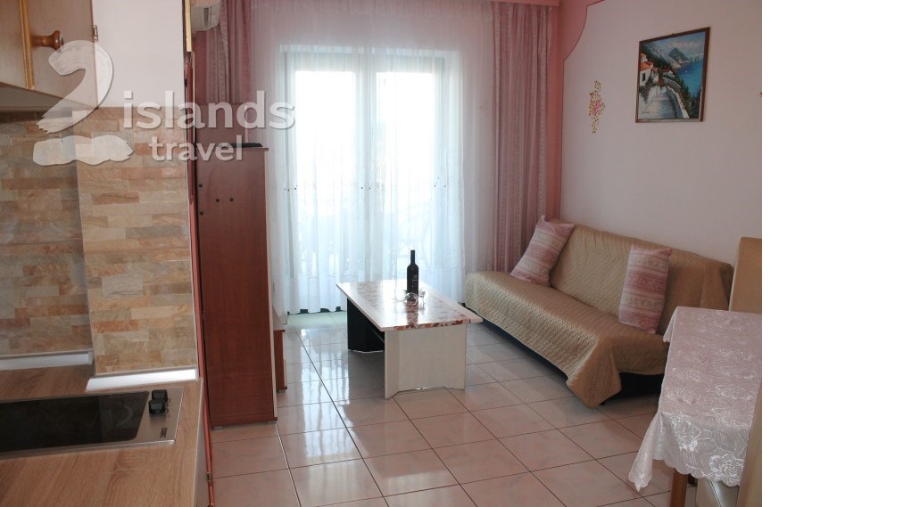 This one bedroom apartment located only a minute away from the sea offers amazing views from its terrace. It is located in Kali on the island Ugljan and offers accommodation for up to three people. It has a well equiped kitchen and bathroom. Air conditioner, tv and internet are all provided.